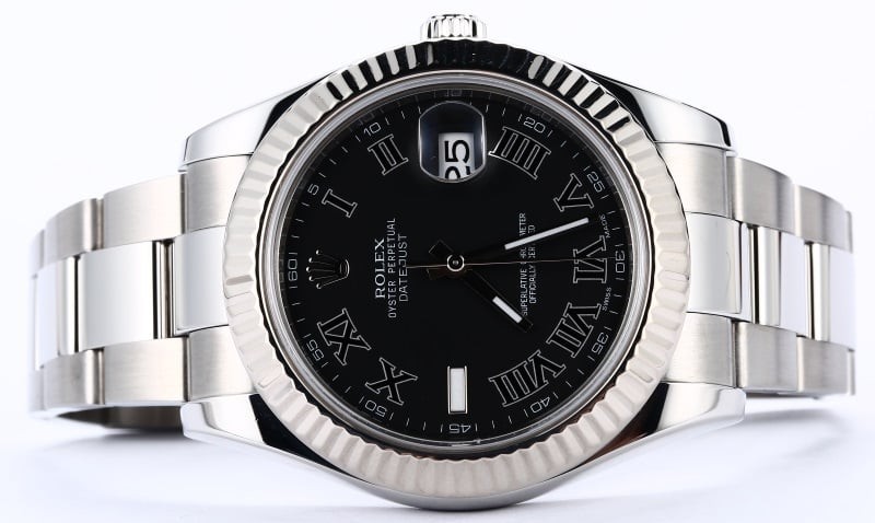 - Case: Stainless steelĀ w/ 18k white gold fluted bezel (41mm)