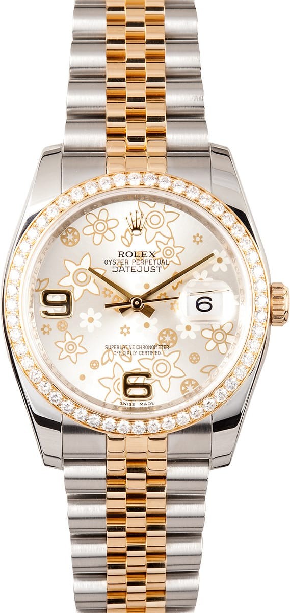 - Dial: Rolex Floral Motif w/ Arabic markers at 6 and 9