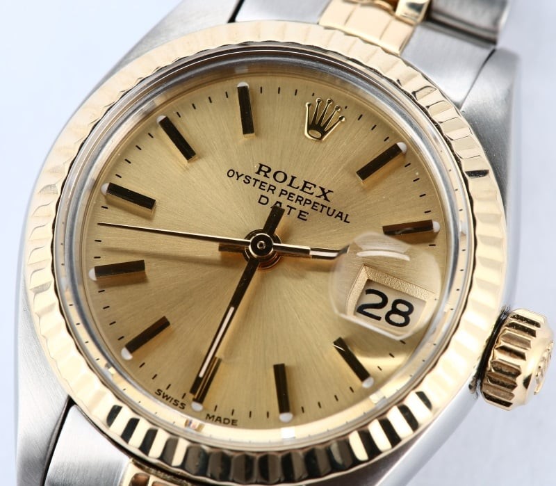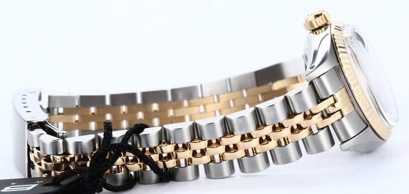- Case: Stainless steel w/ yellow gold fluted bezel (26mm)