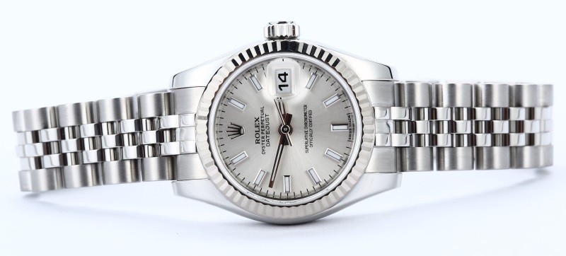 - Case: Stainless steel w/ 18k white gold fluted bezel (26mm)
