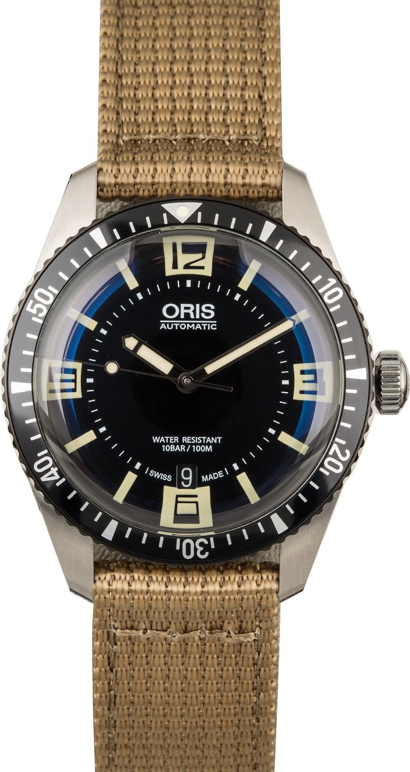 - Movement: Oris caliber 733 automatic movement w/ date, scratch resistant sapphire crystal, 38 hour power reserve, screw down crown