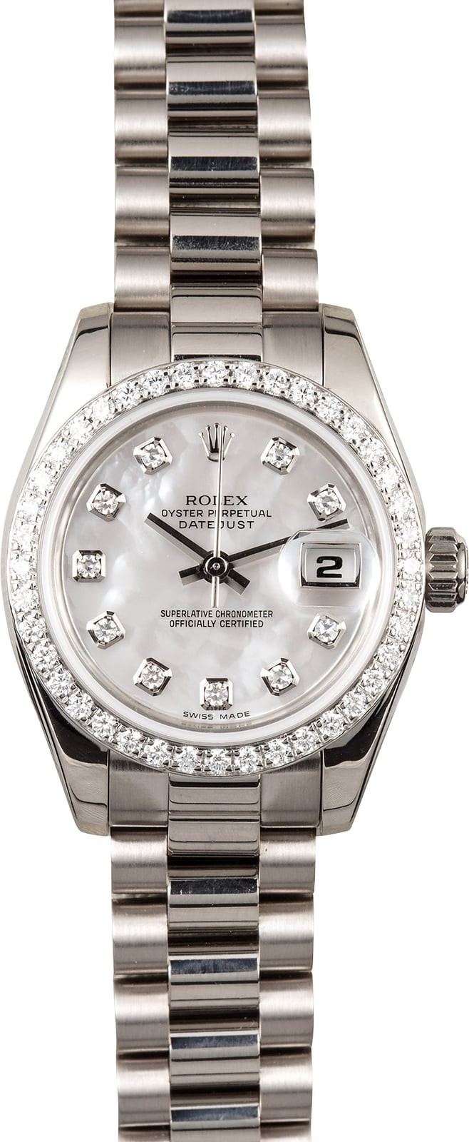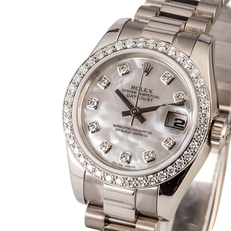 - Dial: Rolex Mother of Pearl w/ 10 diamond hour markers