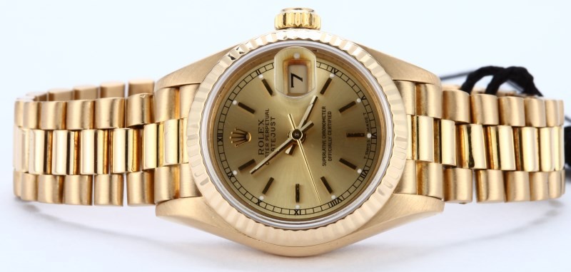 - Case: 18k yellow gold (26mm) w/ fluted bezel