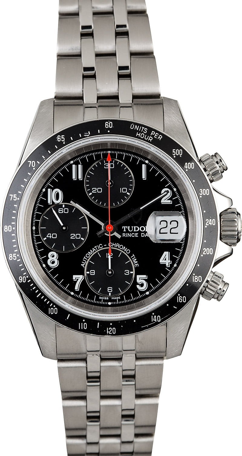 - Features: Automatic movement w/ date, chronograph, waterproof screw-down crown, sapphire crystal